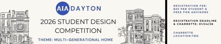 The registration fee is $25 per student which includes entry to the competition and a free t-shirt at the awards ceremony. We have a limited number of scholarships available to cover this registration fee. Please reach out directly if you are a student in financial need. Advisors are encouraged to register free of charge to gain access to the charrette where all of the project information will be shared in greater detail. Just like in previous years, AIA Dayton and supporting sponsors will provide many prizes and scholarships for winning submissions. The deadline to register is the day of the charrette on January 24th. The charrette will be held at a venue in the Huffman District. Final location details are currently being confirmed and will be sent out with more detailed information very soon.